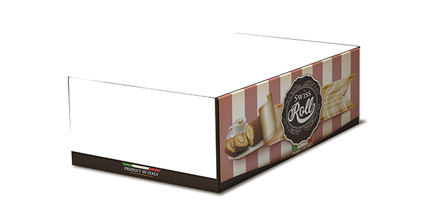 Roll di soffice Pan di Spagna con morbida farcitura al Cacao e Nocciole. Ricoperto con fiocchi di Cioccolato bianco. 300g