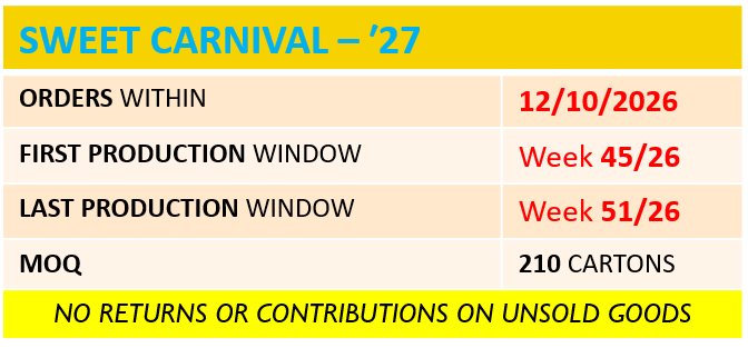 Made with quality ingredients, without preservatives or artificial flavours the Sweet Carnivale snack is totally white: