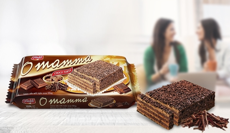 La morbidezza del Pan di Spagna con un’irresistibile farcitura al cioccolato: è O’mamma Choco, una torta prelibata, da gustare per trasformare ogni occasione di incontro in una compagnia per...FETTA!!